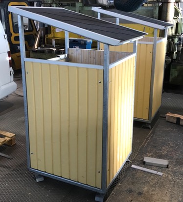 Roska-astian suojat antavat pihalle huolitellun ilmeen. Suoja on teräsrunkoinen (kuumasinkitty) ja puupaneelit voi maalata talon väreihin sopivaksi. Suoja on varustettu säätöjaloilla, joten se ei tarvitse tasaista alustaa.